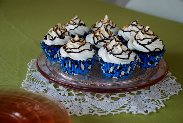 I made s’mores cupcakes – they have a graham cracker layer at the bottom and gooey marshmallowy frosting. I used Grandma Dice’s chocolate cake recipe for the cake part.