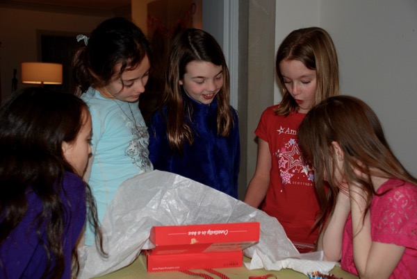 Bea invited four of her friends to celebrate her birthday last night. We went out for pizza and let the girls sit at their own table. Then we came home and had a sleepover. Her actual birthday comes in a week. She had a really fun time with her friends.