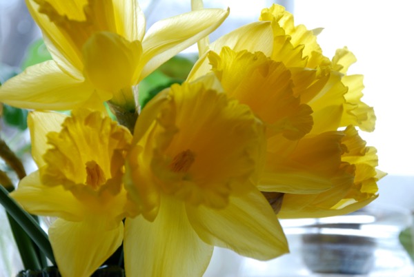 I bought daffodils and made marmalade. I want to try making marmalade once more because I think I cooked that batch too long. It does have a nice carmel flavor though. And outside my window I see yellow witch hazel blossoms.