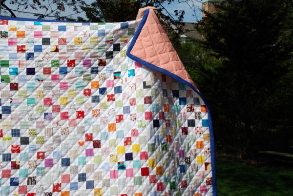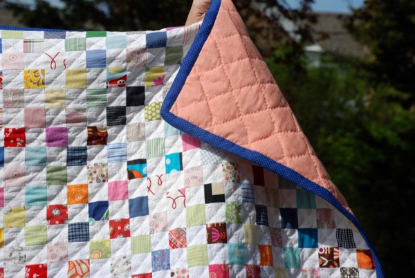 In other news – I finished my quilt! I think I could call this the procrastinating-thinking-about-moving quilt. Or I could call it the Foyle’s War quilt since I re-watched that whole series on PBS while I pieced it. I made this quilt in record time – just four months. It turned out such a happy quilt – I had to put it right on my bed and admire it. Then when Brian got home I made him hold it up for some pictures. Another benefit to having a tall husband.