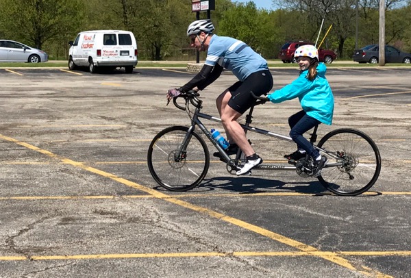 Brian and Bea got a tandem bike! They were both very excited. Brian wants her so badly to love biking like he does. I have to tell him – take it easy – she does like it and she will like it if you don’t overdo it. Here they are in the parking lot of the bike shop. Brian can’t wait to try it in the hills around Zurich. I might even get to try it sometime.