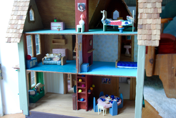 And since our toys are also on a boat in the middle of the Atlantic Ocean we dragged my old doll house out of the basement and it’s been getting some love.