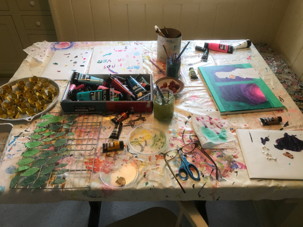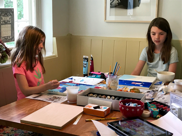 We shipped all of our art supplies over to Switzerland – our paints and brushes and colored pencils and paper and markers and chalks. Everything! How can we survive these summer months without some art? We can’t. I had to take the girls to the art store to buy some paints. And wow, we have been using those paints just about everyday – in between trips to the pool.