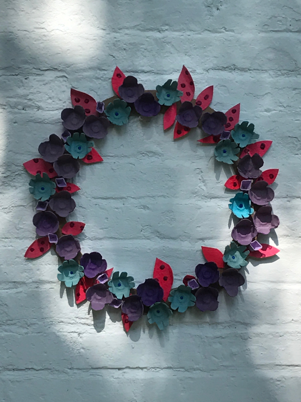 We also made a couple more egg carton wreaths. A completely free craft other than the paint… and the eggs I suppose.