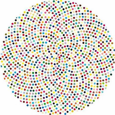 I’d love to create some inexpensive, cheery artwork. Maybe something that emulates Damien Hirst’s circle paintings: