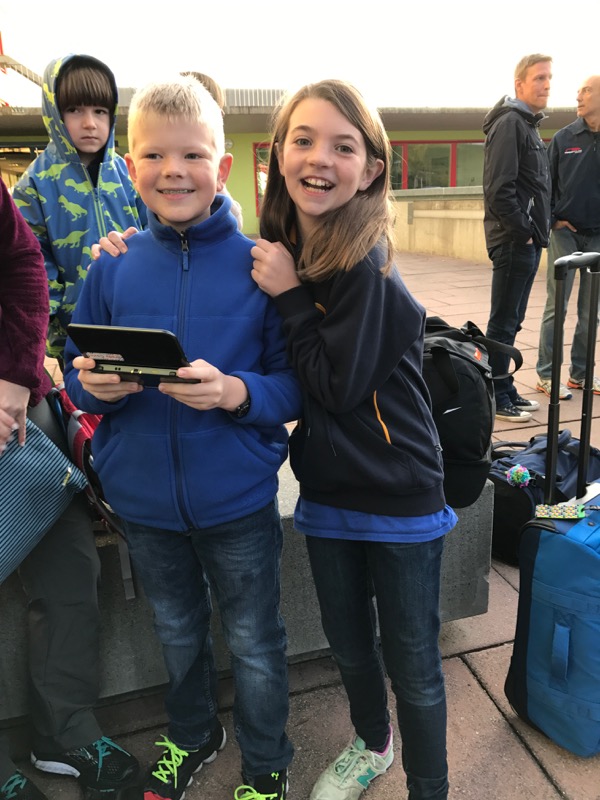 Our Bea left us early this morning. All the 5th graders at her school go to the mountains for a week. She was so excited she couldn’t sleep last night. She is going to Torgon – it’s West and South of us in the French area of Switzerland. I can’t wait to hear all about it. Here she is with her friend Brady right before they left: