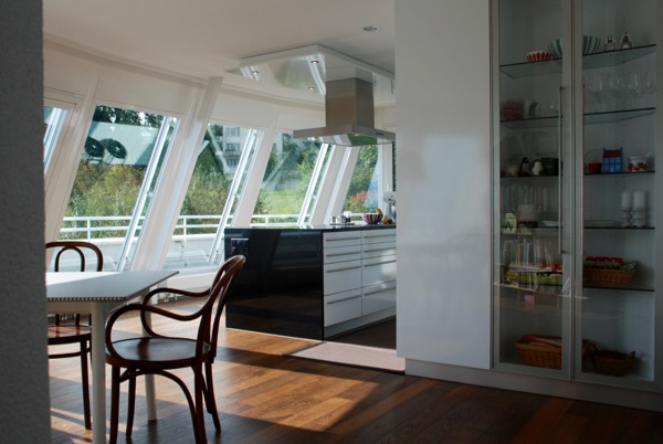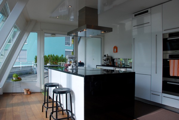 Everything feels very reflective – the windows, the cabinets, the shiny countertop – it even has a mirror backsplash. Sometimes it’s too much light – like when the sun comes up and it’s going to be a hot day and you’re not awake yet. But I can’t complain really.