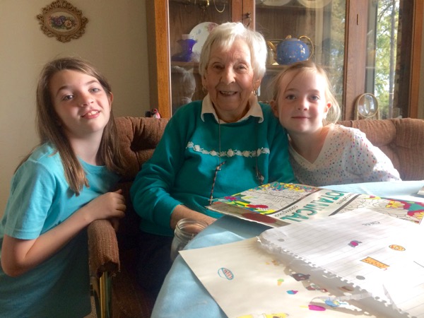 I realized, sadly, we only have grandmas to visit now (no grandpas). But we are fortunate to be rich in the grandma department.