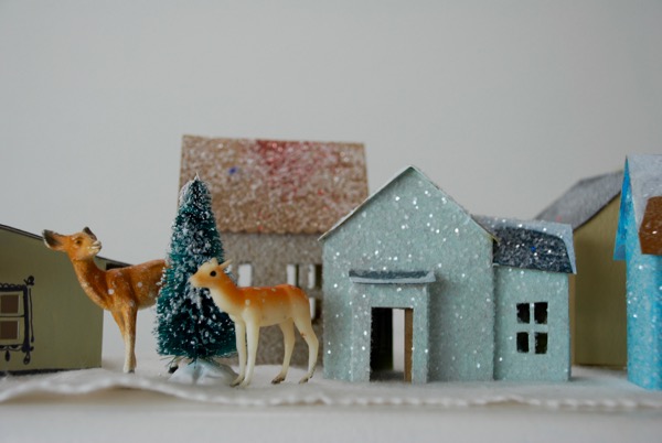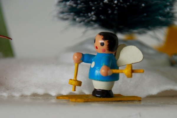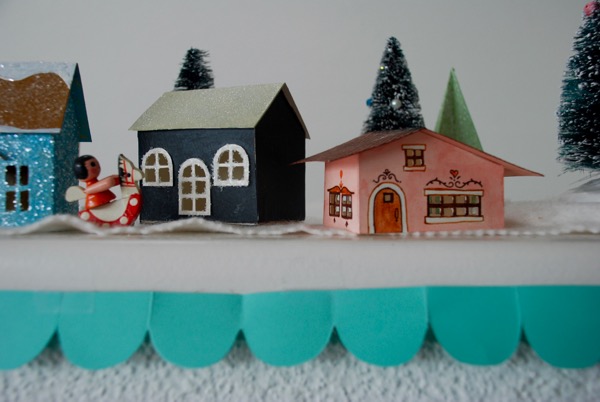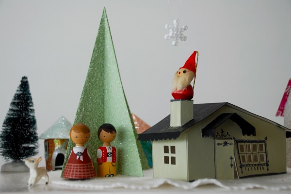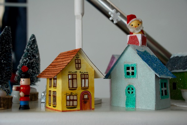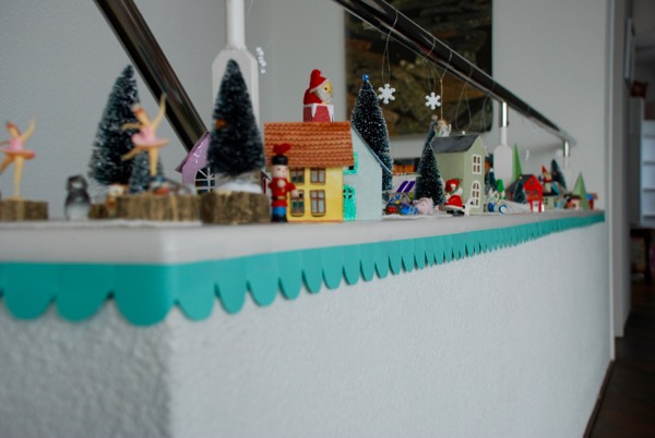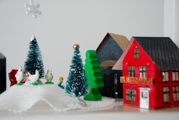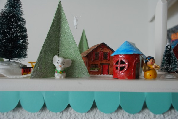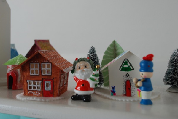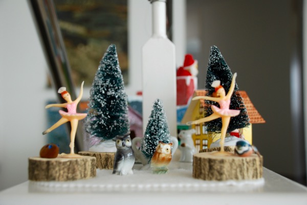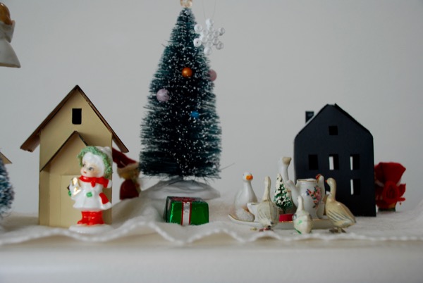 Here’s our little village all set up in our new apartment. Claire did all the arranging this year and oh my goodness did I love watching her unpack the little trinkets and carefully arrange them. She spent a couple hours getting everything out and putting the little people and animals in just the right places. She made up a story for each little scene. I love her! And I love itty bitty kitschy Christmas trinkets!!!