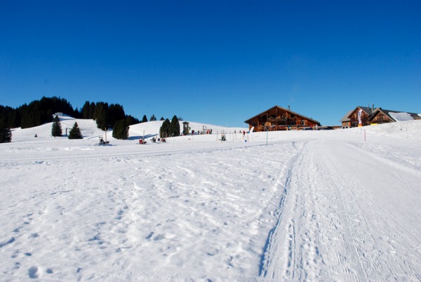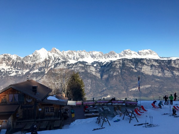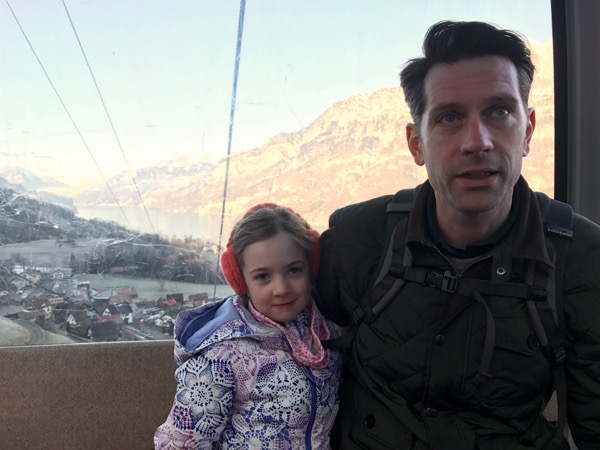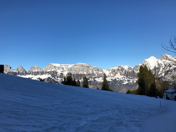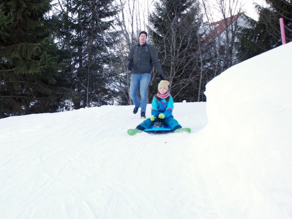 The ski scene here in Switzerland is a big thing. Since the girls will have school ski trips in the future we feel the need to dip our toes in and help them learn to ski. I’m still gathering all their ski gear so we just went for a snowy hike last weekend. Many of the ski areas have nice winter hiking paths. The paths are groomed so the snow is packed and easy to walk on. We went to one of the areas that is really popular for people from Zurich called Flumserberg. It’s really easy to get there – only about an hour on the train and then a ride up to the snow on a gondola. When you get there it is a sea of people in their bright ski gear and they are all clomping around in their ski boots and lugging their gear. And in the distance you can see all sorts people zooming up and down the mountain. They come down the mountain on skis and sleds and snowboards and they go up the mountain on chair lifts and t-bars and gondolas and little magic carpets for the littlest skiers. There are also beautiful cross-country skiing trails that made me wish my dad was with us. There is buzzing activity against the backdrop of white everywhere you look. Everyone seems to know where to go. We felt really new to the whole area but it was a beautiful sunny day – and there was snow! So we did our little hike with our sleds and made plans to come back soon.