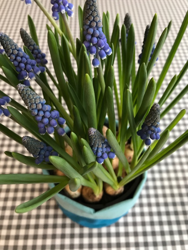 I’ve been taking a little break from making quilt blocks to make fabric buckets. They are quick and they make me happy filled flowering bulbs. I might make some big ones to use as Easter baskets!