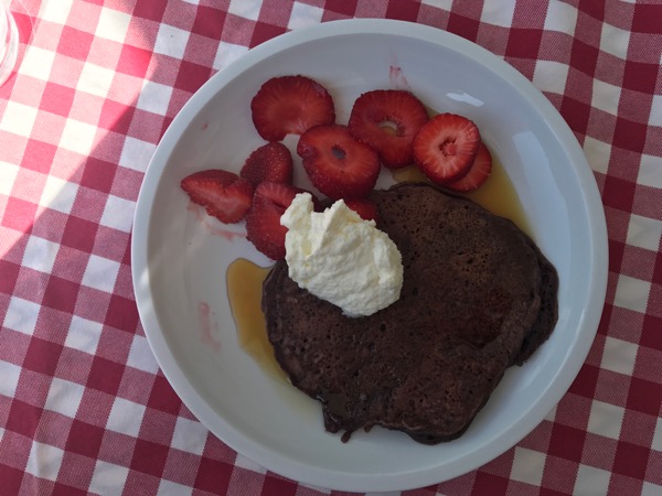 Summer has started off swimmingly. Today we started off with chocolate pancakes. I’ve been adding a third cup of dark cocoa powder and a bit of extra milk to my regular pancake recipe. Mmmmm.