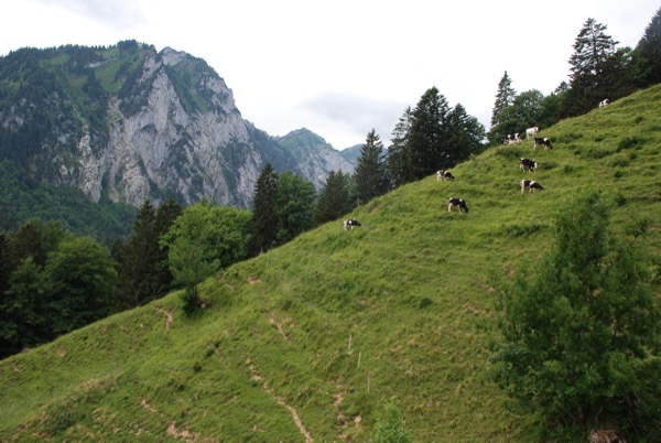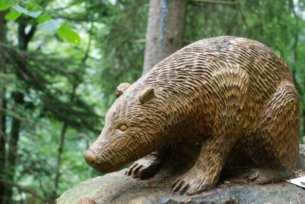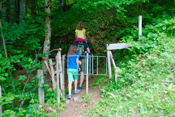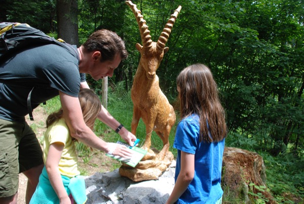 Today we had a nice hike not too far from home – a place called Niederurnen. We took a small cable car up and then we hiked on a special sculpture trail. All along the trail were wooden sculptures and the girls had to find certain numbered ones and collect a stamp. At the end of our hike back at the cable car station the girls turned in their completed stamped cards and got a free little plastic animal. It was really sweet.