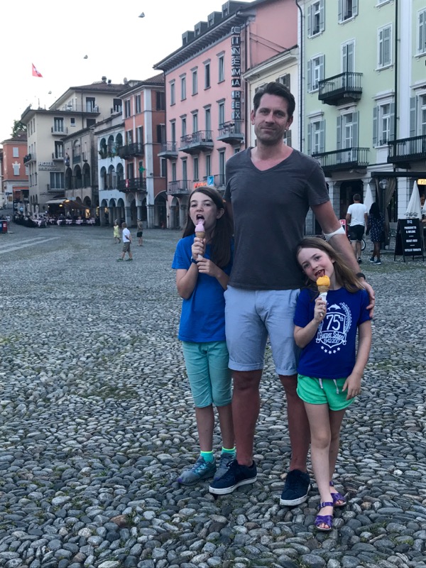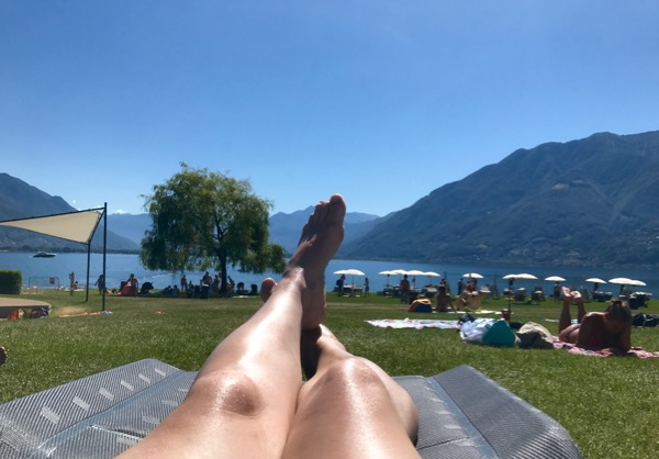 I feel like we haven’t had a good long summer vacation with Brian. All our time will be spent apart while the girls and I visit the US. I guess that’s how it has to be. We did get away for the weekend to the Italian part of Switzerland and it was very nice. We spent Saturday at the Locarno Lido – it’s a swimming extravaganza for the girls. Brian couldn’t swim because his bike accident wounds are still healing so we rented lounge chairs and chatted.