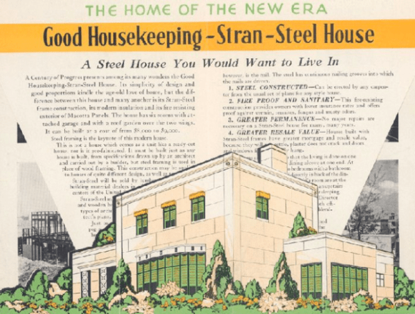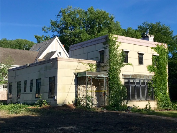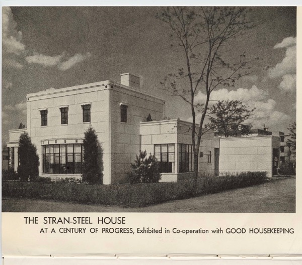 There’s this old and neglected house on our street in Wilmette. I was always peered at it as I went by trying to get a better look at it through it’s overgrown landscaping. It was interesting because it’s an old modern style home with an unusual shape and neat details like lots of copper and little scalloped window shades. Well the other day a crew came and removed every shrub and tree on it’s lot and then I discovered that it’s a house from the 1933 World’s Fair. It was an example of modern and progressive architecture, built by The Stran-Steel Company. It’s one of the “Houses of Tomorrow” at the Century of Progress exhibit at the fair. It was moved to Wilmette after the fair and it seems everyone forgot it’s significance.