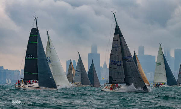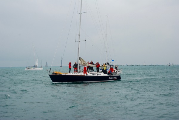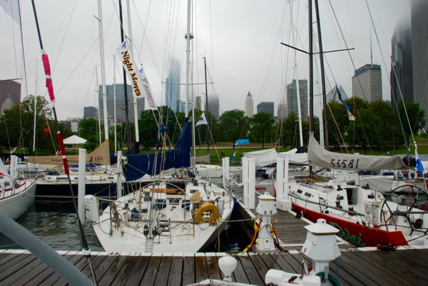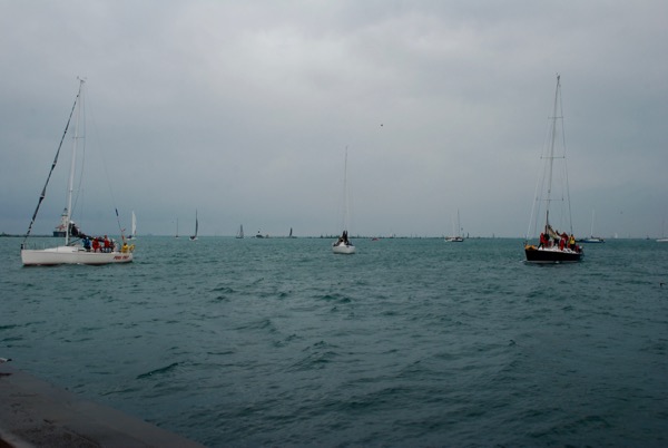 Jennifer was supposed to sail in the Chicago to Mackinac race for the first time this weekend. Unfortunately the boat’s mast broke in a race the week before so she couldn’t sail. So instead we took the train down to the Chicago and watched the boats leave the harbor. It was a miserable day and we felt for the sailors, but I’m glad we went down to be spectators.