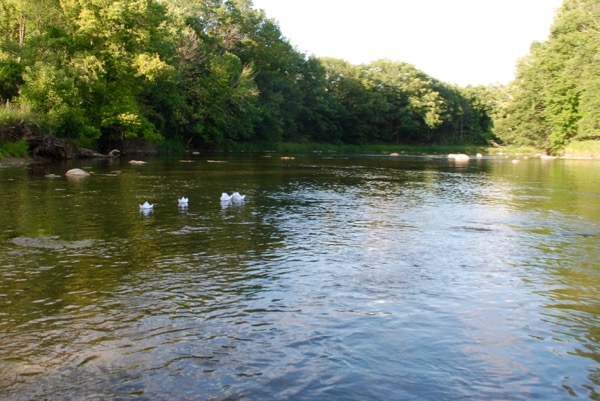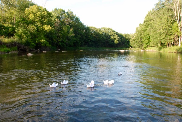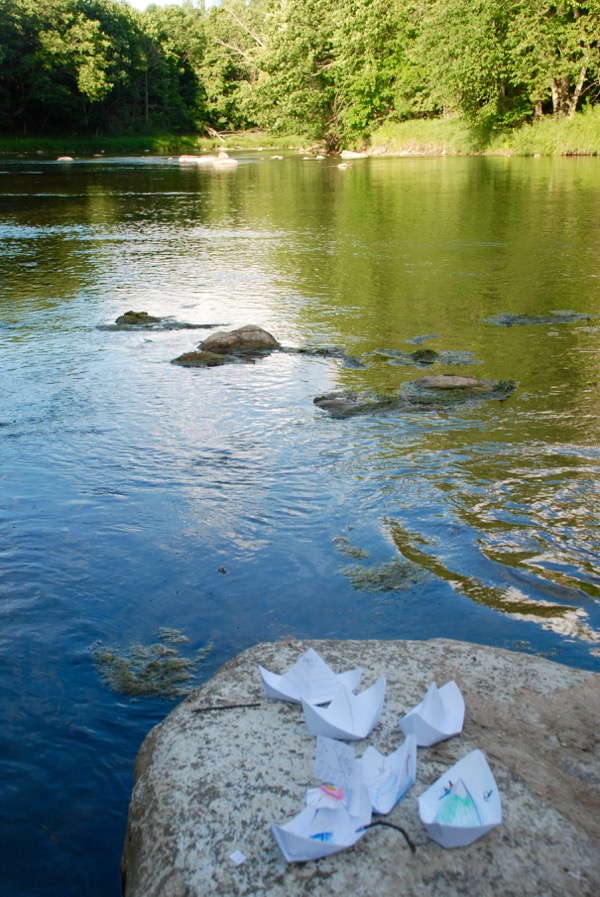 We went down to the Pine River to think of Dad. We made paper boats and decorated them and wrote messages and then sent them down the river. It was the right spot for Dad and it was a beautiful night to remember him.