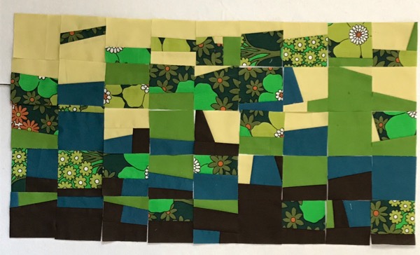 So I’ve made a design board for myself and I’ve been working on a mini quilt. No plan, no pattern. I’ve just delighted in choosing colors and sewing them together haphazardly.