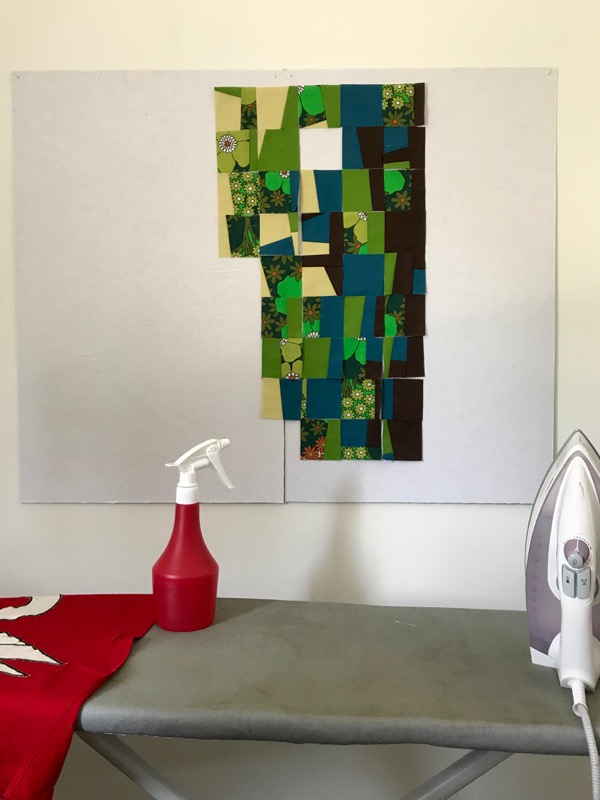 When we were traveling I read the blog of Carolyn Friedlander. She’s a quilter and fabric designer. I got so much inspiration from her graphic patterns and her non traditional quilts. I also noticed that she (and all other serious quilters) use design boards. A design board is just a big board covered in flannel – you can stick your in-progress quilt blocks up to see them and rearrange them.