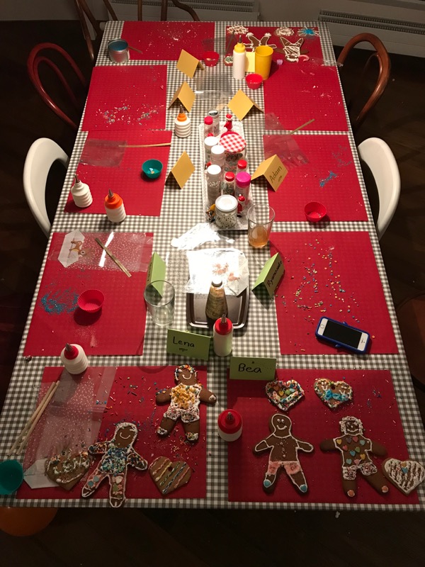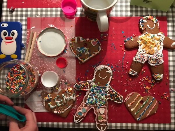Today we had our annual gingerbread man decorating party. We had ten kids altogether. I love to see the kids engaged and having fun. The gingerbread men turn out having so much personality!