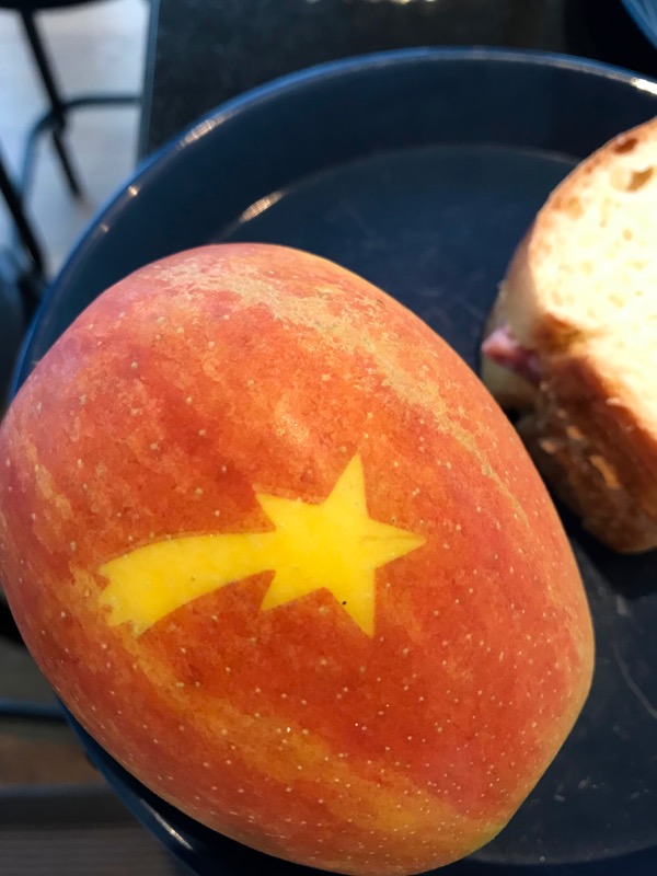You can’t buy red hots or molasses over here in Switzerland but you can get these special New Year apples. They must put a sticker on the apple while it’s growing because the color is in the real apple skin. Nice!