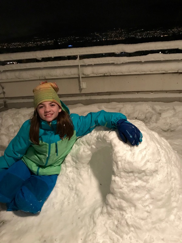 The snow is all gone now but Bea sure enjoyed it when it was here. She made a mini igloo on our patio: