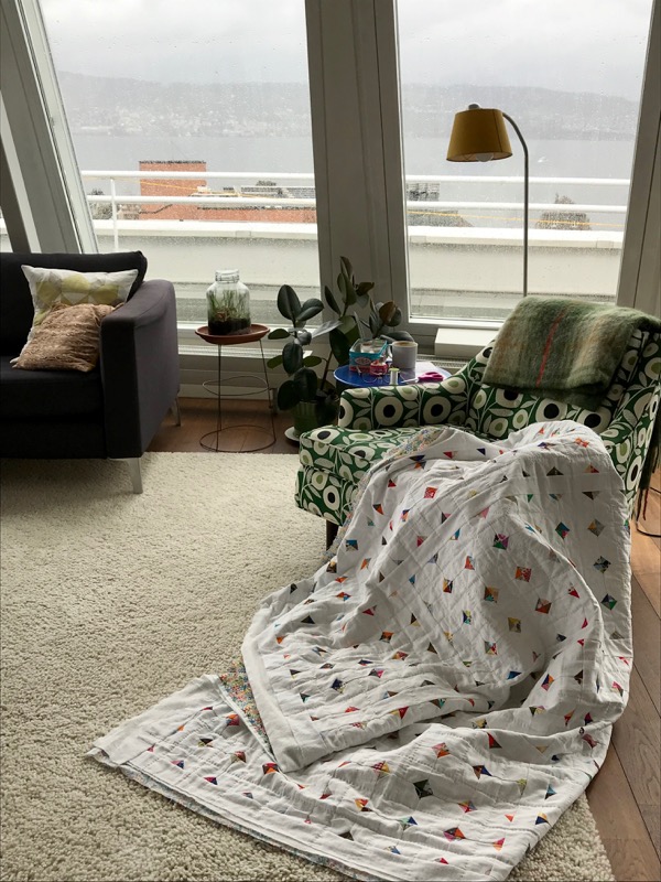 We were due for a nice weekend at home. Brian has been taking advantage of warm weather whenever he can – getting out for some biking and running. Me? You can find me sitting in my green chair doing lots of quilting.