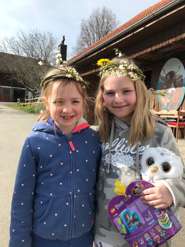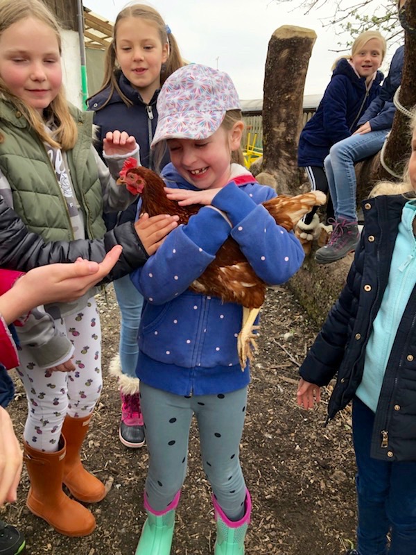 They made crowns from flowering branches and they got to hold chickens.