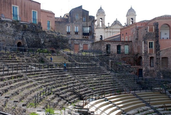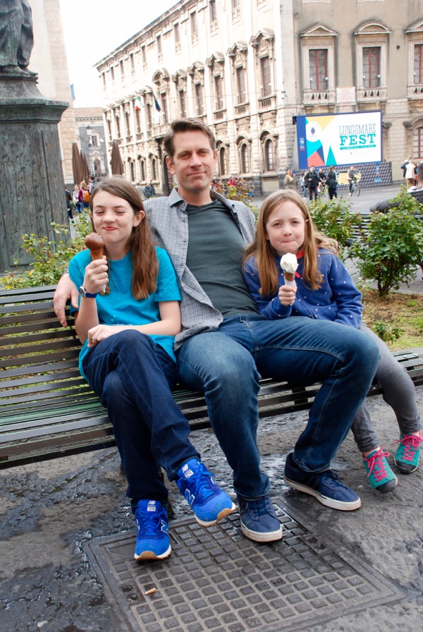 We flew into Catania on the East side of the island. We started out exploring a Roman theater. We discovered that Roman and Greek ruins were everywhere in Sicily. It felt hard to grasp just how old everything was. The sights were amazing but the interpretation was not great. Since the places like the theater below have been built upon and added to and endured earthquakes I wondered what was what exactly. But it was super interesting all the same.