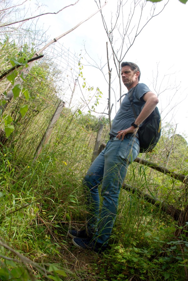 We quickly did some Googling to try to find an area for hiking. The land was beautifully hilly and it was a sunny day and we really wanted to explore. Brian found some trails close by so we hopped in the car and we were delighted to find a marked trail head. Off we went. The trail was overgrown but we were hiking… for about 100 feet. Then the trail abruptly stopped and it was fenced off. You can see Brian’s frustrated look above and I’m rolling my eyes behind my glasses below.