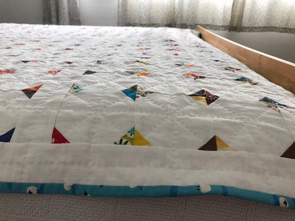 And I also completed a sort of marathon today. A marathon of sewing. I finished my quilt! Yay for Brian. Yay for me. Yay for cozy quilts.