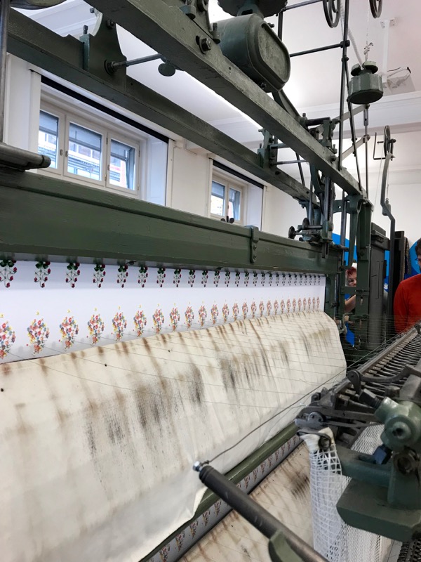 While everyone in my family is away (strange) I took a field trip of my own. I went to the Textile Museum of St. Gallen. Eastern Switzerland has an important history of lace making and embroidery. So I looked at a lot of really old beautiful lace – some of it amazingly made by hand. And I saw dresses that look so delicate they must have been good solely for standing around looking pretty and drinking tea while holding a parasol. The highlight was seeing a demonstration of a hand embroidery machine from 1890. The name doesn’t really make sense – hand and machine? But it’s basically a machine with 80 double pointed needles. The operator positions the fabric according to a chart and all the needles punch through the fabric at once. And then the needles go back through to the other side with a really satisfying sound. It’s basic and yet not.