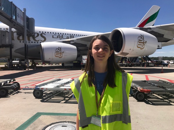 We got to see an Airbus A380 up close and then we watched it take off while standing in the middle of the runways. The A380 is the biggest passenger plane right now – I think it holds almost 500 passengers! The tour was very cool.