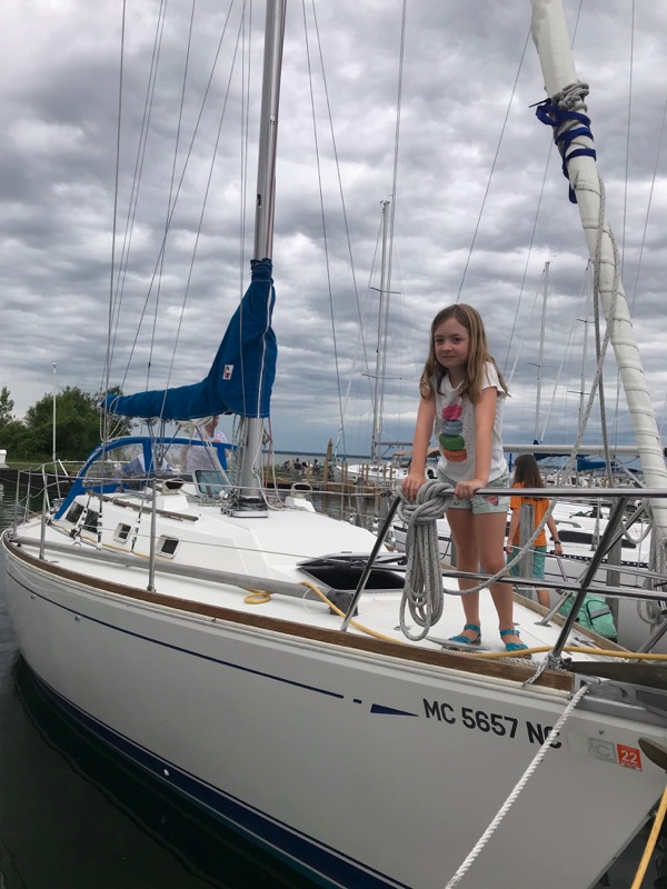 Jennifer is a good sailing teacher. There’s Bea hoisting the main sail.
