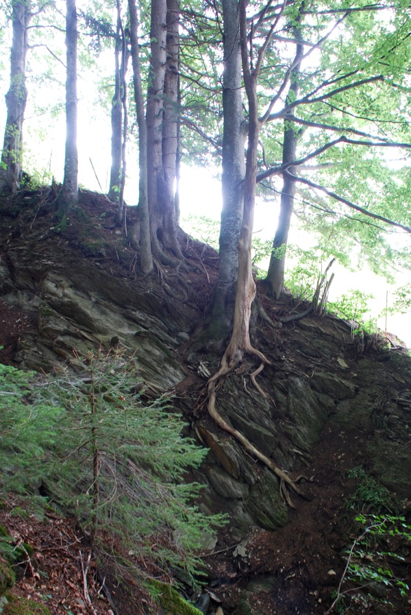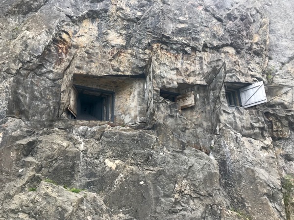 We’ve driven along this lake and along a big rock formation many times. but until this weekend we didn’t notice that it was a World War II fortification. We arrived and parked across from it just as a public tour time was finishing. So then I went down a rabbit hole of web sites that show all the fortifications that are hidden in plain sight around Switzerland. The translation I read was a little rough but it seems like inside this rock there were accommodations and a kitchen and communication devices and anti-tank guns. There was a metal doorway right where the trailhead started – I wish we had come just bit earlier for the tour! It’s all very interesting.