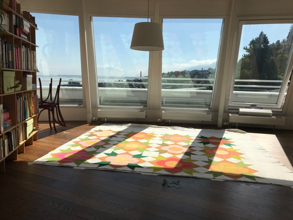 I basted my quilt when it was really sunny. And I’ve started the quilting.
