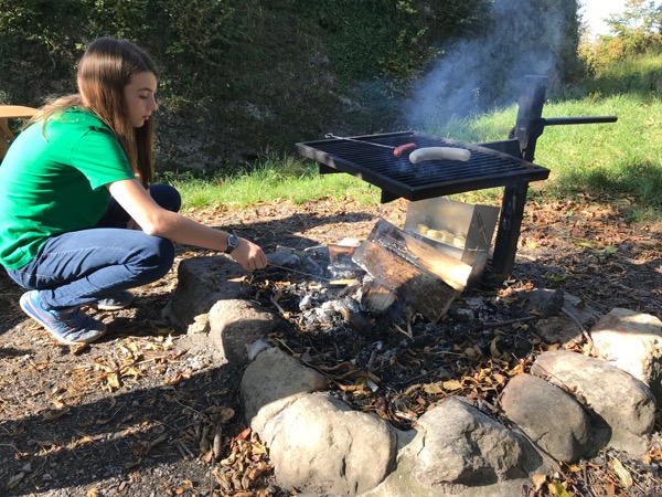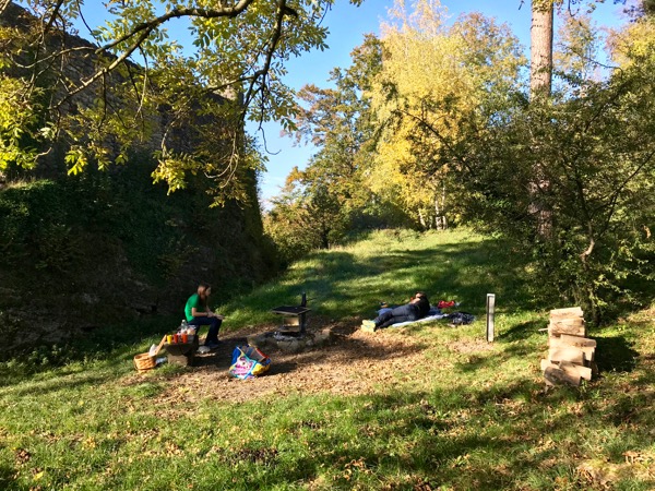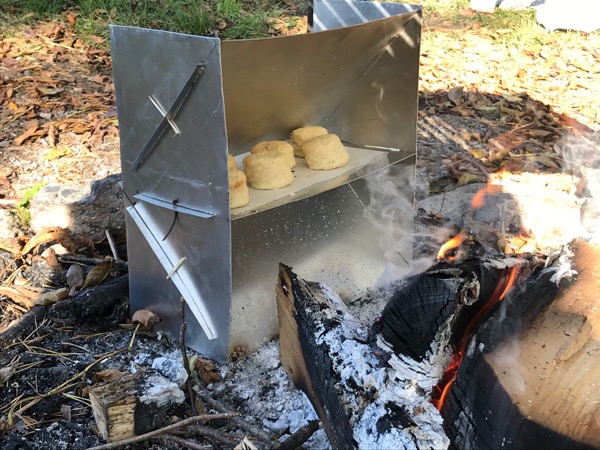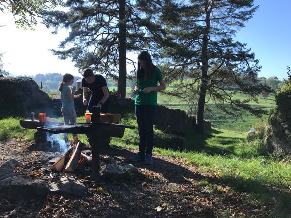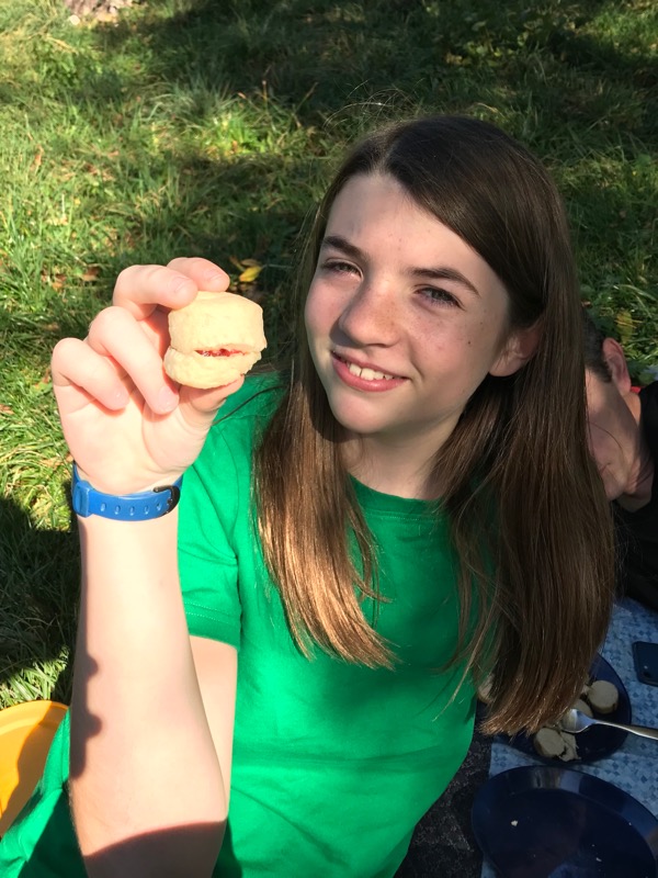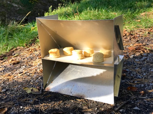 On Saturday we made a campfire lunch at the ruins in our town. Sausages, cheese, cider, some cucumbers and clementines and biscuits! I was super excited to finally use the reflector oven that my dad made for me.