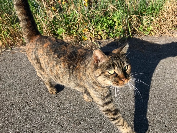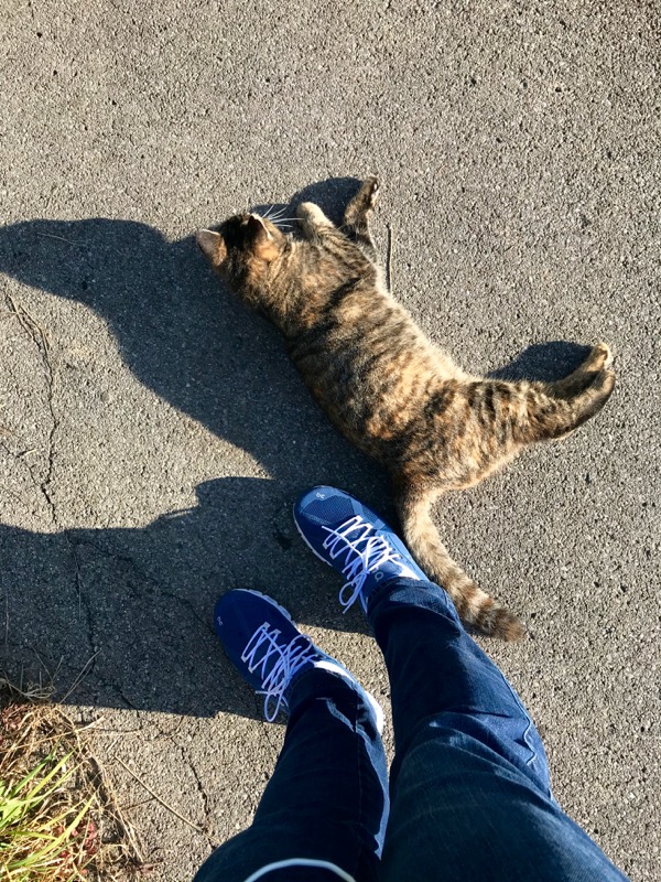 A friendly kitty interrupted my walk and insisted on me petting him. I talked to him in English and he still liked me.