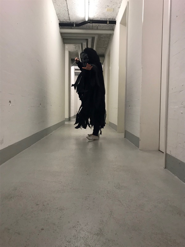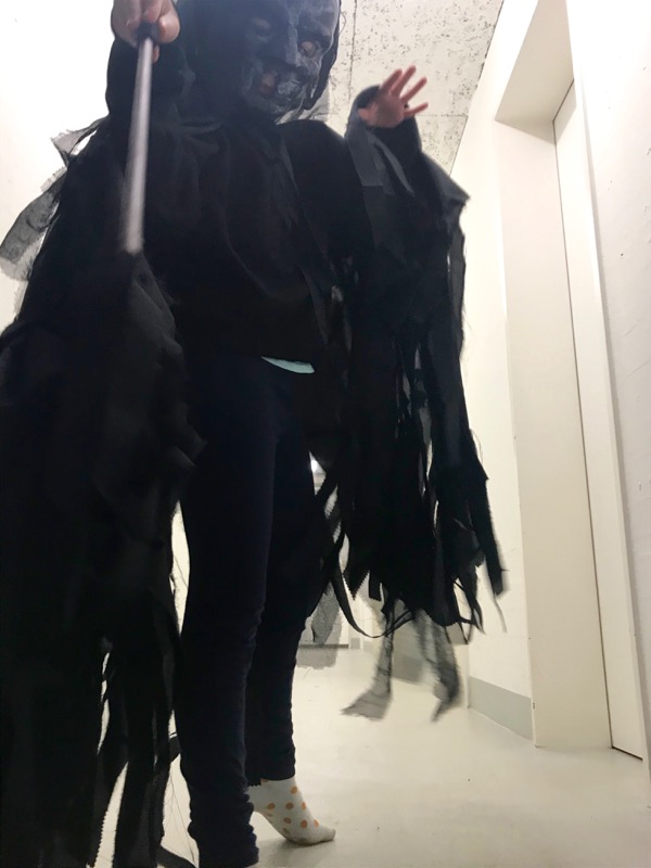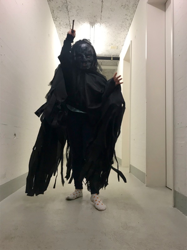 Yes, it’s Claire! She’s a Death Eater from the Harry Potter books. On one hand I love that she wants to be a frightening character from a book. On the other hand I can’t help but totally annoy her when I recall the year she was a cute little white kitten. Lots of eye rolls – sorry love. I do love your costume!