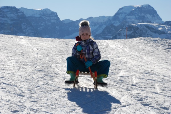 There goes Bea – zooming way ahead of us on her sled.