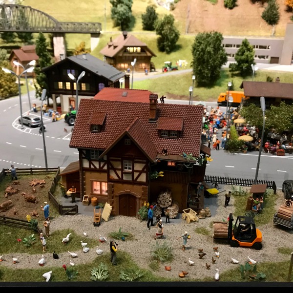 Over the weekend we went to a new museum that is right next to the Rhine Falls. A model train and miniatures replica of Switzerland. Right now they have highlights from Eastern Switzerland, Appenzell and the Bernese Oberland area but they are going to continue to add more regions.