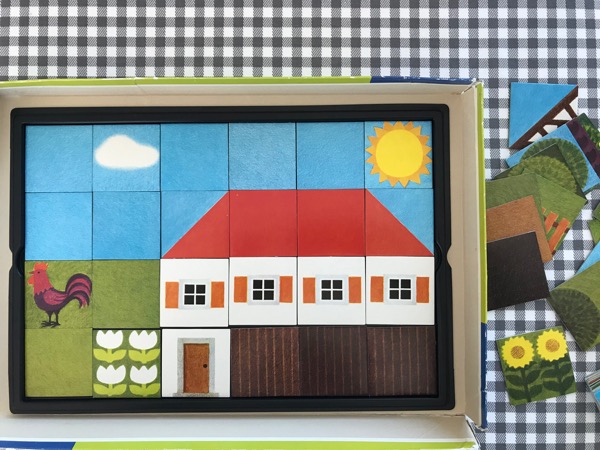 I’m having so much fun making all these house variations. I’m wondering if I need some patchwork trees (like the one’s Aunt Sandy likes). I’m reminded of this vintage house play set that I found when my girls were little.