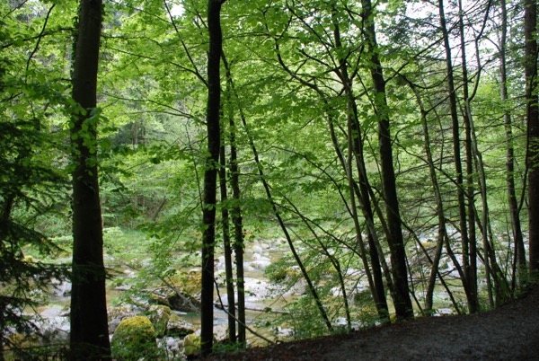 We took two hikes over the weekend. One in the rain and one in the sun. Our first hike was along the Sihl river. We passed a barn with a fighter cat – watch out! Yikes – luckily we saw no cat, only the warning. Ha.