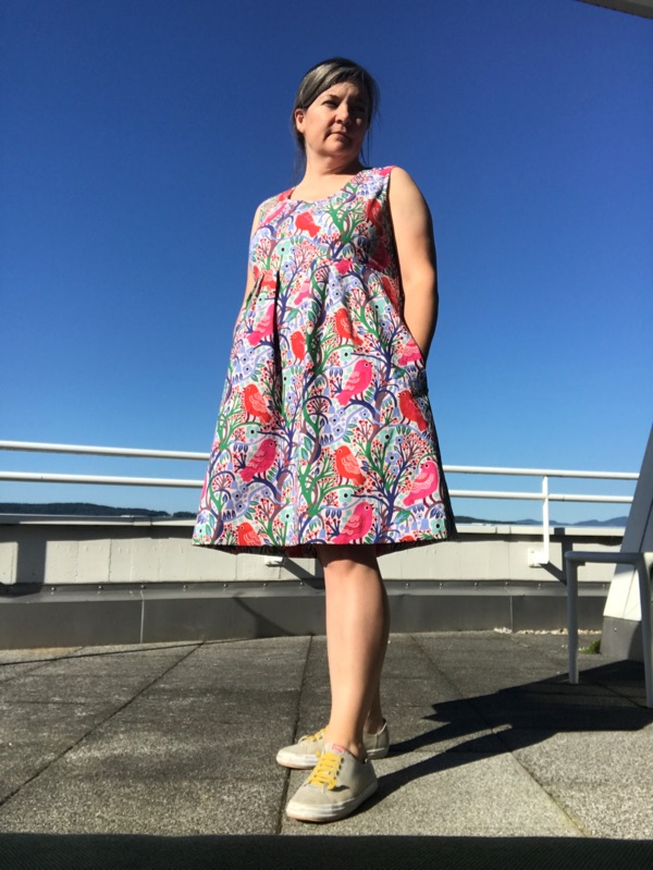 I made a dress. It’s the reliable Washi Dress pattern that I have made several times. I bought this fabric a while back. I love the fabric so much – I don’t care if it makes a dress that’s a bit crazy. It makes me happy! And it has pockets! The fabric is from Monika Forsberg.
