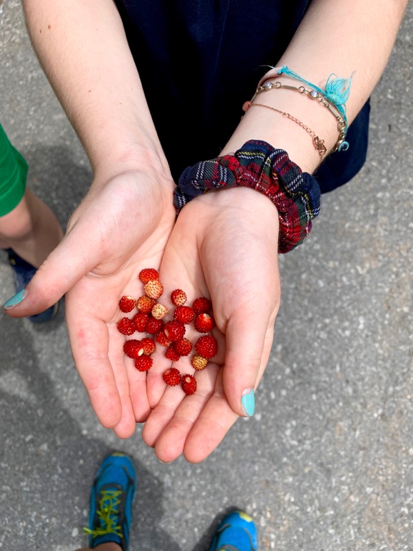 There were little strawberries growing all over – including on the side of a big rock wall.