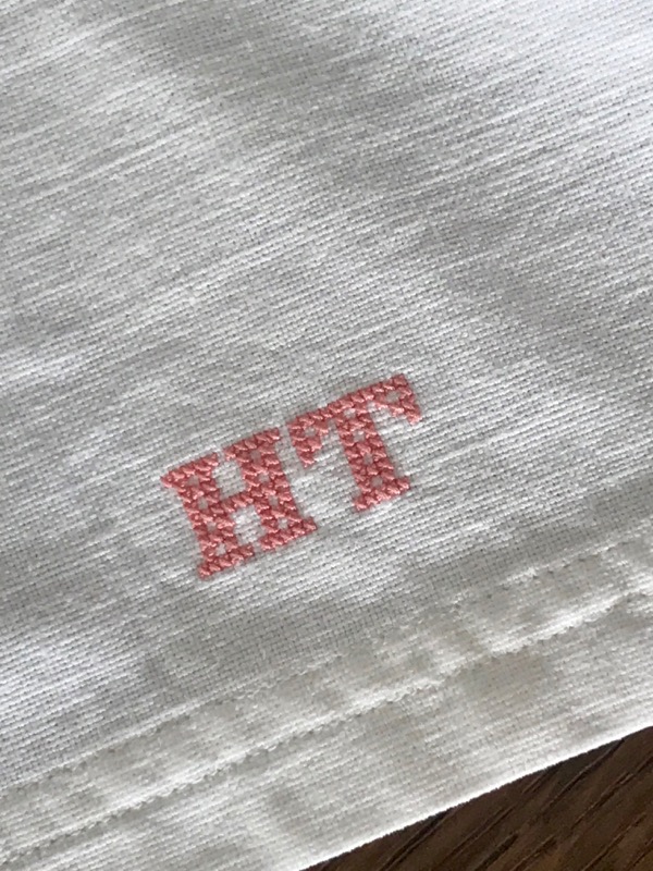 And I can’t stop buying old sheets. I don’t know what you call this type of fabric but it’s a sturdy cotton that is soft from age. They are great for quilting and this one has a sweet little monogram.