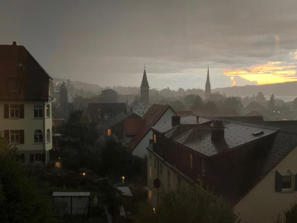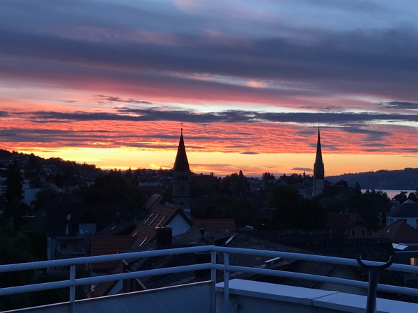 I’m going to miss our view so so much! Back in Wilmette I look out my kitchen window through tree branches and I can see birds and squirrels nibbling berries. It’s a charming view – intimate and green – but it doesn’t really compare with what I have here in Switzerland. The two views are completely opposite.