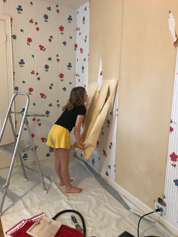 And Claire and I have jumped into wallpaper removal in her room. She’s been dreaming of painting and redecorating her room for a long time. It’s a big project but we should be done before our shipment arrives around the end of August.
