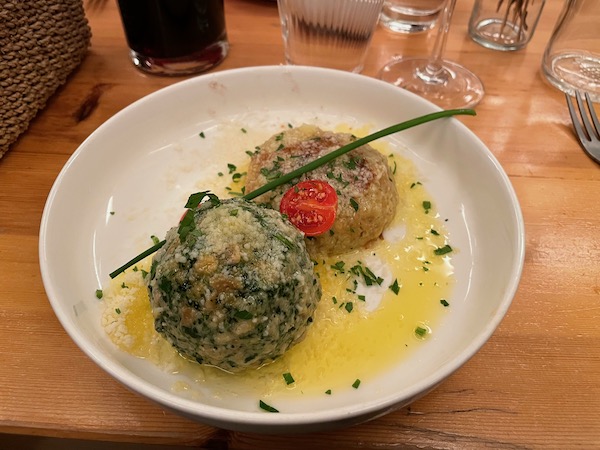 Another highlight of our trip was this restaurant that Bea suggested. The restaurant specializes in Südtiroler Knödel (South Tyrol Dumplings). Bea has a friend from Northern Italy who we can thank for this discovery. This carb heavy food is right up my ally! And this type of Knodel sits on a pond of butter – swoon.