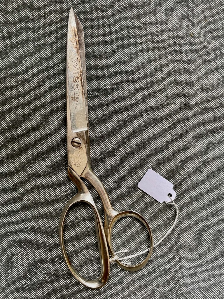 My favorite scissors are old ones so I had to give these a try. They have that nice shape for cutting fabric. I haven’t tested them yet. They need a good clean and probably need to be sharpened. The brand is Wiss – which seems to have a long history of making quality cutting tools in the US. The company was founded by a Swiss man in the US.